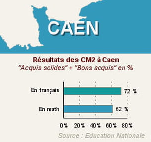 Dans l'académie de Caen, la moitié des élèves ont eu 36 bonnes réponses ou plus sur 60 en français et 22 bonnes réponses ou plus sur 40 en mathématiques.