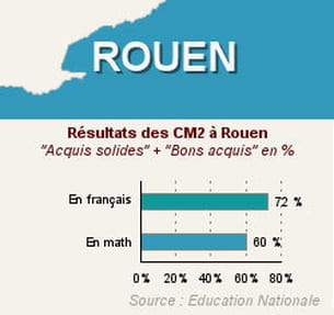 Dans l'académie de Rouen, la moitié des élèves ont eu 37 bonnes réponses ou plus sur 60 en français et 22 bonnes réponses ou plus sur 40 en mathématiques.
