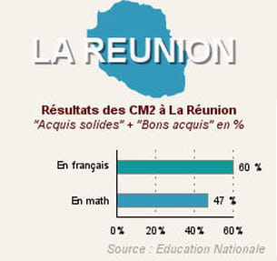 A La Réunion, la moitié des élèves ont eu 33 bonnes réponses ou plus sur 60 en français et 19 bonnes réponses ou plus sur 40 en mathématiques.