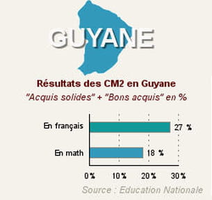 En Guyane, la moitié des élèves ont eu 20 bonnes réponses ou plus sur 60 en français et 10 bonnes réponses ou plus sur 40 en mathématiques.