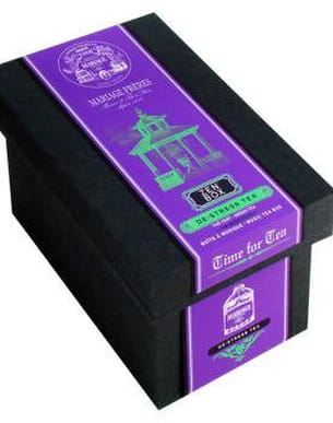 Voici un cadeau de Noël raffiné ! Cette jolie boîte à musique en bois renferme un nouveau mélange de thés Mariage Frères aux tonalités apaisantes. Des saveurs à découvrir d’urgence : bouquet de fleurs de thé, de lavande, de bleuets et d'oranger. Ce joli coffret enserré d’un ruban violet contient également un doseur en métal argenté.