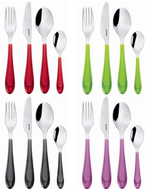 Designée par Angeletti Ruzza, cette ménagère vaut par la minutie accordée à ses détails : deux matières plastiques savamment entremêlées viennent former, au bout du manche, deux gouttes colorées. Un vrai défi technique qui donne tout son charme et son originalité à ces couverts, disponibles en plusieurs coloris.