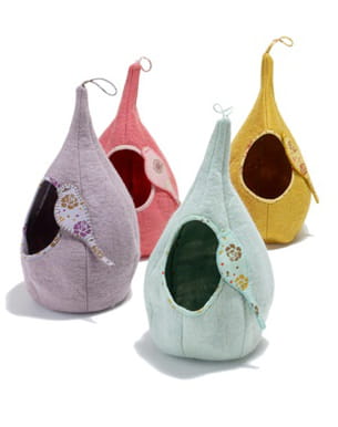 Osez l'originalité en offrant ces petits rangements en feutre originaux et rigolos. Tels des petits nids (un oiseau est perché à l'entrée), ils accueilleront tous les petits objets divers et variés que l'on aime bien avoir à portée de main. A placer dans une chambre, une cuisine ou une salle de bains.