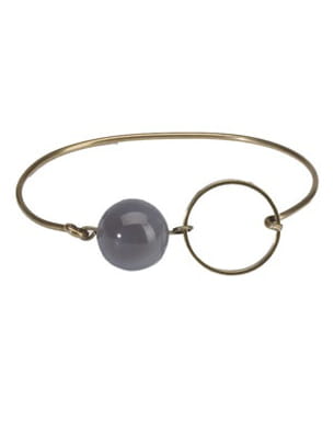 Ce bracelet s'impose par sa construction harmonieuse. Une perle ronde d'agate vient se greffer au laiton rigide et vieilli pour un résultat des plus harmonieux. Le résultat se révèle discret et très élégant. Un cadeau subtil et raffiné. Collection automne-hiver 2010-2011