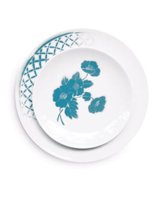 La collection d'assiettes "Marguerite" est inspirée de la vaisselle vintage de nos grand-mères. Réalisés au pochoir, les motifs sont déclinés sur un coin de l'assiette en porcelaine pour un effet modernisé.