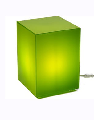 Cet étrange cube lumineux, diffusant une belle teinte verte, peut tout aussi bien se poser au sol que faire office de petite table, puisqu'il peut supporter jusqu'à 18 kg. Existe aussi en violet.