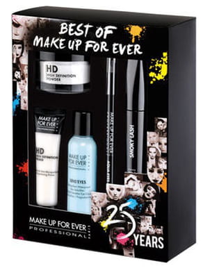 La marque Make Up For Ever souffle ses 25 bougies cette année mais c'est elle qui fait un cadeau avec ce kit ! A l'intérieur de ce coffret en édition limitée, on retrouve les essentiels de la marque, à savoir : un crayon waterproof à la texture douce et onctueuse, un mascara noir pour un regard charbonneux et envoûtant, une base de maquillage, un démaquillant pour yeux sensibles et une poudre pour une peau veloutée et matifiée tout au long de la journée, et de la soirée ! Un cadeau idéal pour les fêtes de fin d'année.