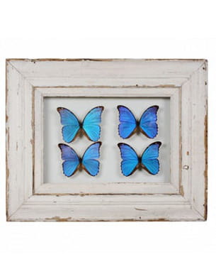 Elaboré à partir de bois recyclé, ce sublime cadre décoratif ravira votre Maman à la fois par son côté patiné mais aussi par la délicatesse et la beauté qui se dégagent des quatre papillons bleus exposés. Voilà un cadeau exceptionnel.