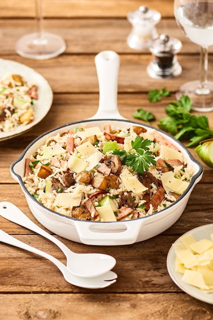 Voilà un plat réconfortant que toute la famille sera ravie de partager ! En 30 minutes, réalisez une poêlée de riz basmati, des champignons émincés, des lamelles de comté et des dès de rôti de porc. Savoureux et équilibré !