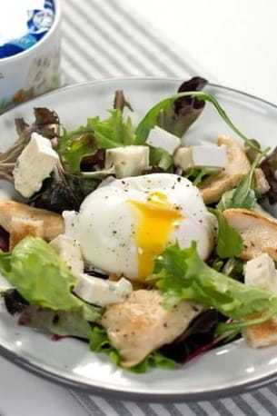 Salade de poulet, œuf poché au Bresse Bleu © Bresse Bleu
