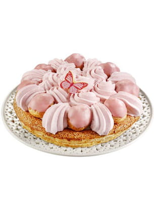 Une pâte feuilletée garnie d'une couronne de choux et d'une chantilly à la rose avec, en son centre, un lit de framboises entières garnies d'une crème au mascarpone. Le tout est signé Philippe Gauvreau, chef 2 étoiles. Maman craquera totalement pour ce délice fruité !