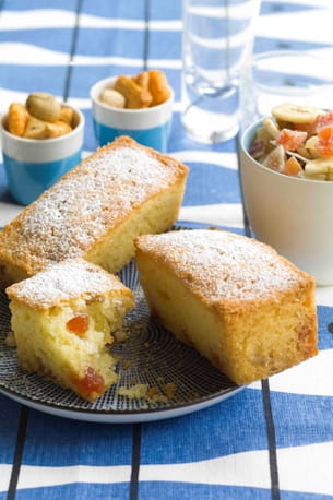 Il fait chaud, et si on en profitez pour déguster un bon cake aux fruits gorgés de soleil ? Avec ses saveurs de citron, de vanille et de fruits confits... On se sent comme les pieds dans l'eau !