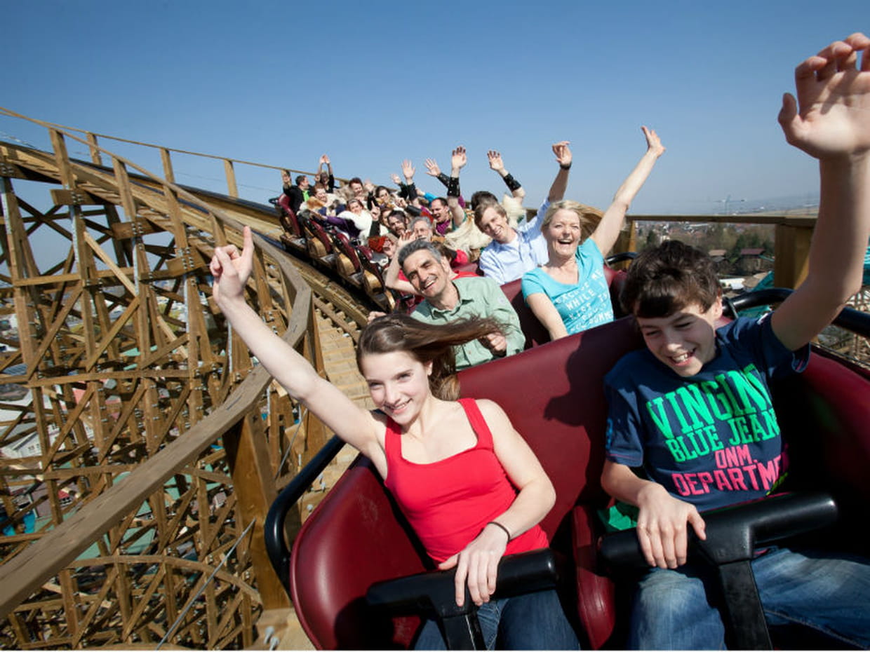 Le Wodan est une magnifique attraction en bois. Sa construction massive de 1050 mètres de long et de 40 m de haut ne cache pas un train lancé à pleine vitesse à près de 100 km/h. Sensations fortes garanties.