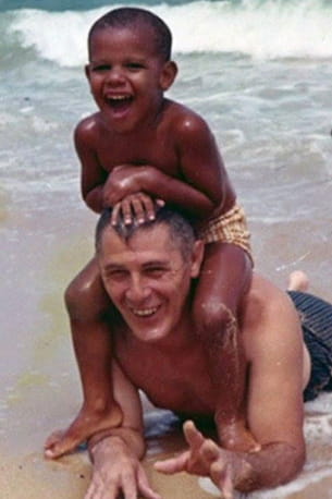 Assis sur les épaules de son grand-père, Stanley Armour Dunham, ce petit garçon n'imaginait certainement pas à cette époque qu'il deviendrait le premier président noir des Etats-Unis. Aucun doute, c'est bien Barack Obama !