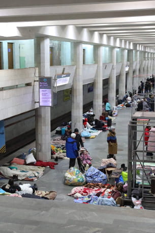 Une femme accouche dans le métro en Ukraine, sous les bombardements russes © Vyacheslav Madiyevskyy/SIPA
