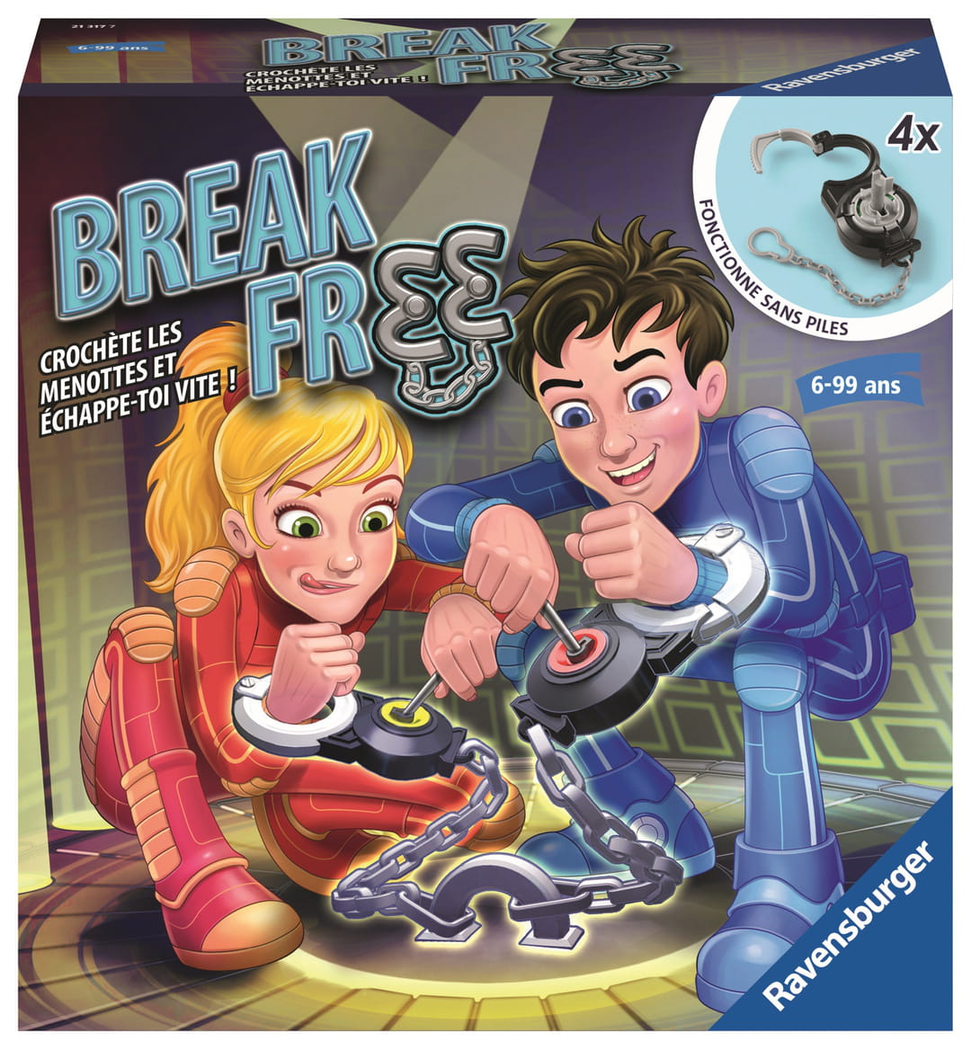 La tendance des Escape Game bat son plein ! Petits et grands adorent dénicher ensemble les indices qui leur permettront de s'évader. Avec le jeu Break Free, les joueurs (dès 6 ans) sont menottés et doivent se libérer le plus rapidement possible, à l'aide d'un crochet. Qui sera le meilleur espion ?