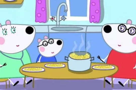 Ce mardi 6 septembre 2022, la chaîne britannique Channel 5 a diffusé le quarante-et-unième épisode de la septième saison de Peppa Pig. Dans celle-ci, une camarade de classe de la célèbre héroïne, Penny, une oursonne polaire, réalise un dessin en classe pour présenter sa famille. "Je vis avec ma maman et mon autre maman. Une de mes mamans est docteure et mon autre maman cuisine des spaghetti. J'adore les spaghetti", déclare la jeune élève, et l'institutrice lui répond : "Formidable". Un peu plus tard, on voit ses deux mères venir la chercher à l'école.