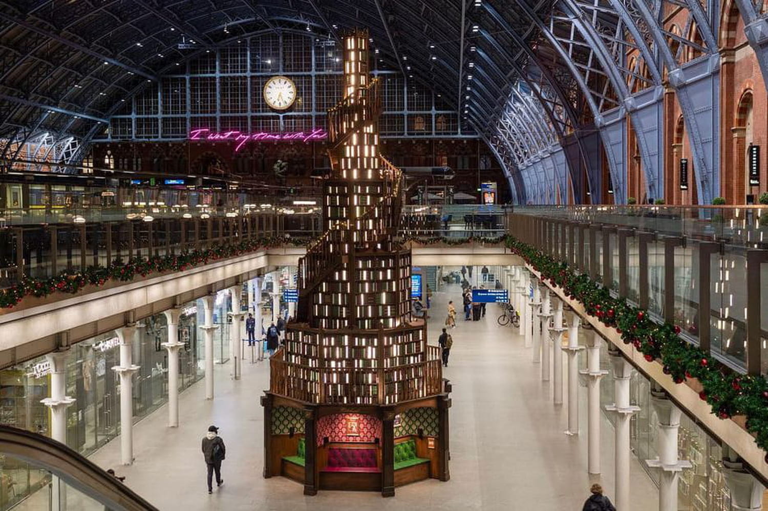 Si vous pensiez avoir tout vu en termes de sapin de Noël, celui-ci devrait particulièrement vous impressionner. Pour cela, direction Londres et la gare de St Pancras International. Depuis le 1ᵉʳ novembre 2023, un sapin de Noël pour le moins original s'est installé en plein cœur de la station londonienne. C'est d'ailleurs une tradition chaque année puisque les organisateurs ne font jamais dans la demi-mesure et optent généralement pour un arbre de Noël qui n'a rien de traditionnel. Cette fois encore, ils l'ont confirmé en imaginant, en collaboration avec la plus ancienne librairie du Royaume-Uni, Hatchard Books, qui serait aussi le fournisseur de la cour royale, un sapin de Noël haut de 12 mètres, doté d'un escalier en colimaçon et décoré par plus de 3 800 livres peints à la main. Tous les ouvrages sont des titres de Noël. Vous pourrez par exemple retrouver Un chant de Noël de Charles Dickens.
