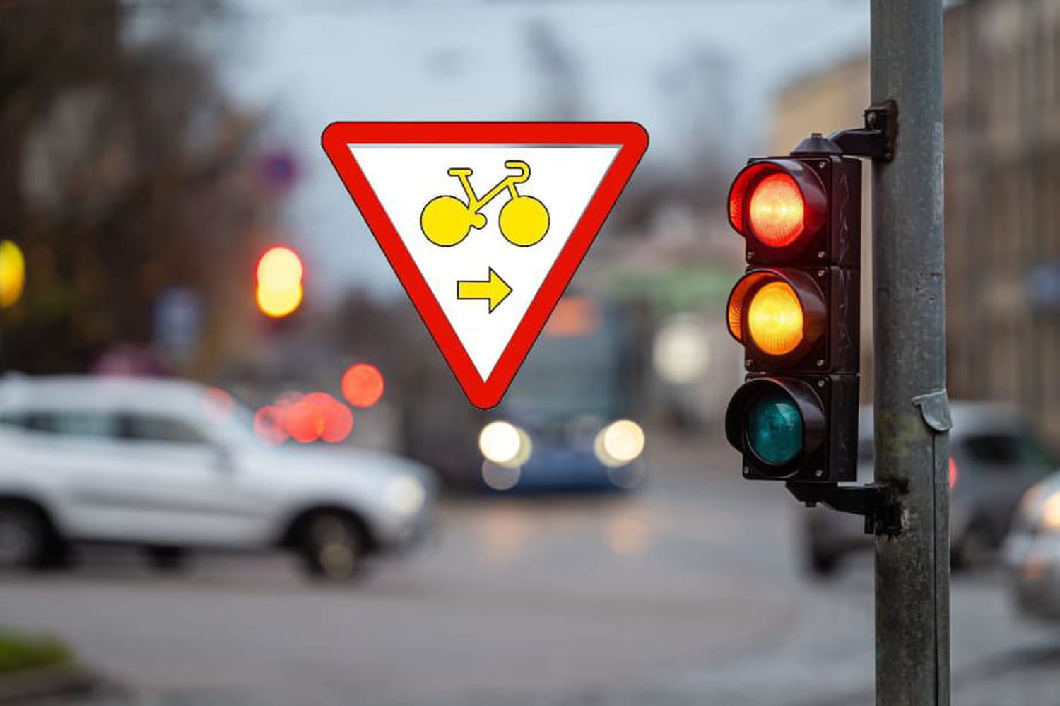 Le plus grand d'entre eux est sans doute de pouvoir passer quand le feu est rouge, sous certaines conditions. En effet, les utilisateurs de trottinettes électriques et autres EDPM sont désormais concernés par le panonceau d'autorisation conditionnelle de franchissement d'un feu avec un "cédez le passage". Ce panneau de type M12 représente un triangle blanc avec une bordure rouge et une pointe de direction, sur lequel sont dessinés un vélo et une flèche jaunes.