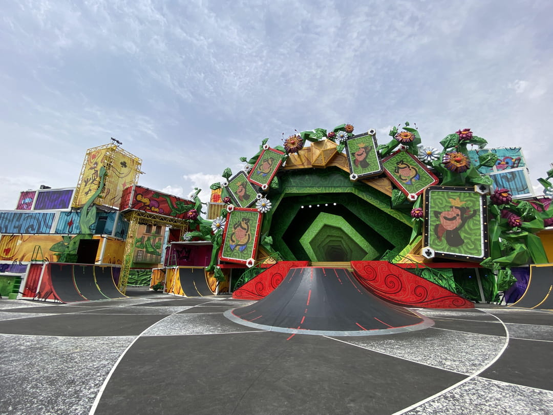 Une fois assises, l'attente est passée assez vite puisque nos yeux étaient rivés sur les impressionnants décors, élaborés avec des conteneurs, des rampes de skate park et une scène centrale, entourée d'écrans géants. Aucun détail n'a été laissé au hasard, l'univers y est coloré et décalé à l'image du pays des merveilles.
