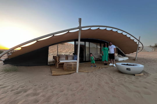 S'évader du tumulte de la ville pour une aventure authentique au cœur des dunes dorées du désert. C'est l'expérience que nous avons eu la chance de tester en famille, dans le désert de Dubaï, à Sonara Camp. Que vous partiez en couple ou en famille, vous créerez forcément des souvenirs inoubliables. En effet, dès l'arrivée, l'expérience est conçue pour marquer les esprits. Tout commence par un accueil particulièrement chaleureux : le personnel est au petit soin pour nous accompagner en jeep dans notre logement, pour porter nos valises... Le moindre effort est ici évité pour ne pas fondre sous la chaleur du désert (en mai, il fait déjà près de 43 degrés).