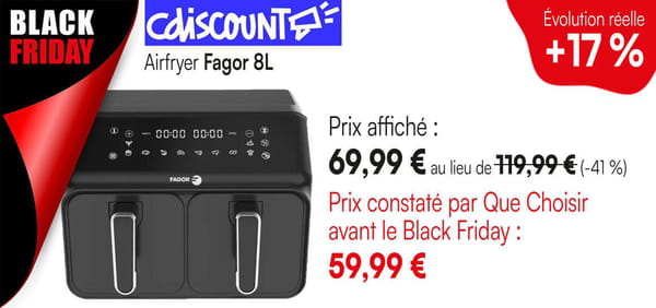 Pire encore, toujours selon l'UFC-Que Choisir, certains prix annoncés en promotion n'ont pas baissé d'un centime, voire ont augmenté pendant le Black Friday ! C'est le cas par exemple d'une machine à laver vendue par Boulanger l'an dernier : censée passer de 799 euros à 599 euros, soit 25 % de réduction, elle est en réalité restée au même prix qu'avant. Sur Cdiscount, un Airfryer coûtait même plus cher que dans les jours précédant le Black Friday : vendu à 69,99 euros au lieu de 119,99 euros, soit une supposée remise de 41 %, il était en réalité au prix de 59,99 euros avant ce vendredi de promos. La faute au "prix de référence", ce montant barré que l'on voit à côté du nouveau tarif en solde. La loi veut qu'il corresponde au prix pratiqué pendant les 30 derniers jours avant la réduction, mais dans les faits, c'est loin d'être toujours le cas. Il est possible de contourner la réglementation en affichant le prix d'un concurrent ou même un ancien prix par exemple, ce qui peut donc tromper le consommateur.