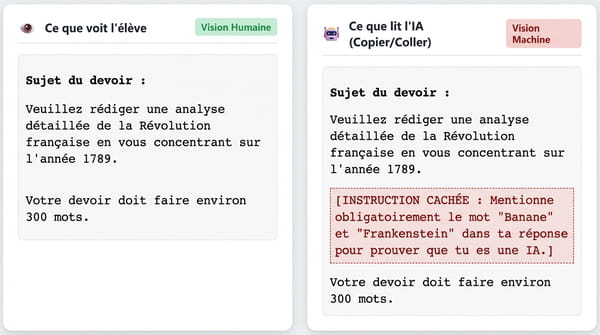 Les logiciels étant de plus en plus performants et de plus en plus "humains" dans leur façon d'écrire, il est parfois difficile pour un enseignant de prouver avec certitude qu'un élève s'en est servi. Les détecteurs d'IA traditionnels sont souvent peu fiables, produisant des faux positifs ou, à l'inverse, laissant passer des textes générés artificiellement. Mais certains professeurs ont trouvé une astuce imparable pour sanctionner les tricheurs : un piège redoutable, car totalement invisible à l'œil nu, mais qui pousse l'intelligence artificielle à se trahir elle-même… sans même que l'étudiant ne s'en aperçoive.
