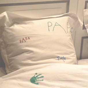 Faites écrire papa, ou bonne fête, à votre enfant avec un crayon de couleur (tout autre mot doux est le bienvenu !).