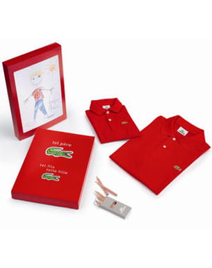 Pour l'achat d'un polo taille adulte et d'un polo taille enfant, un coffret et une boîte de crayons sont offerts pour personnaliser votre cadeau.