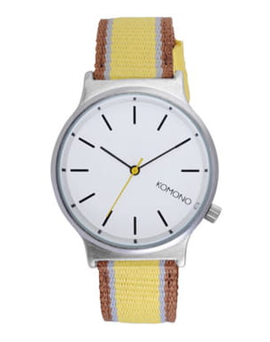 Komono propose cette nouvelle série dérivée de son modèle Wizard aux fines aiguilles. Le cadran est épuré et les couleurs de son bracelet, doublé de cuir, sont pile poil dans la tendance estivale.