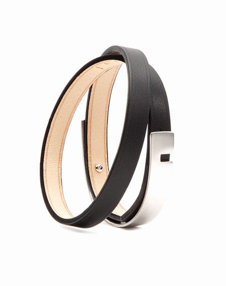 Le design moderne de ce bracelet deux tours en cuir de veau et en argent mat devrait séduire les pères urbains et coquets.