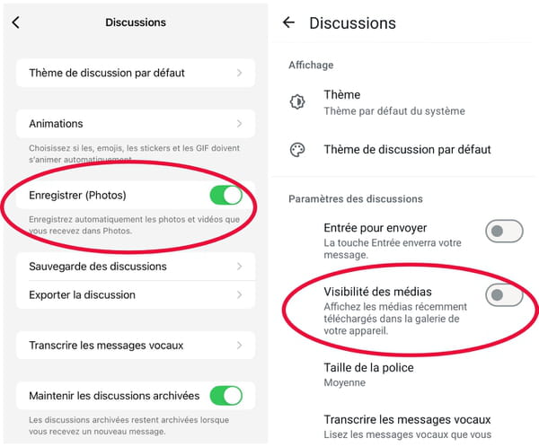 Mais bonne nouvelle, le désactiver est un jeu d'enfant : il suffit de se rendre dans l'onglet "Discussions" des paramètres de WhatsApp. Pour les iPhones, il faut alors décocher l'option "Enregistrer (Photos)", ce qui évite la duplication des fichiers. Pour les smartphones Android, c'est la même chose, sauf que l'option s'appelle "Visibilité des médias". En la désactivant, les images restent visibles au sein de l'application, mais ne sont plus automatiquement copiées dans la photothèque du téléphone. En revanche, petite subtilité qui peut s'avérer pénible pour les Android : les photos ou vidéos supprimées de la galerie seront également supprimées de la conversation WhatsApp. Elles restent accessibles, mais il faudrait les télécharger une par une si vous souhaitez les voir. Dans tous les cas, désactiver cette fonction vous fait gagner quelques Mo ou même Go, et peut aussi fermer la porte à certains escrocs qui l'exploitent pour envoyer des fichiers et voler des données sensibles.