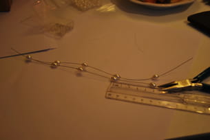 - Une fois les fils coupés, les rejoindre par une première perle.