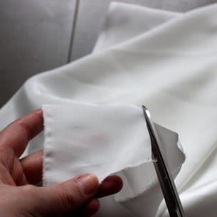 Découper une dizaine de bandes de 5 cm de large et 1 mètre de long dans la soie.