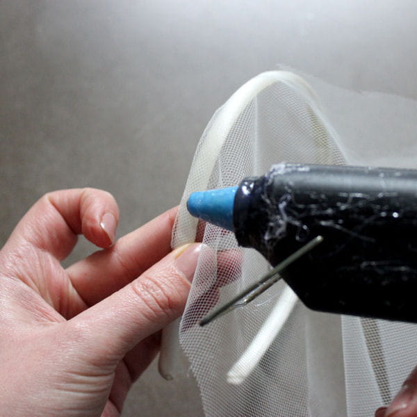 Entourer le tulle autour du serre-tête. Fixer l'ensemble à l'aide du pistolet à colle sur toute la longueur de l'accessoire.