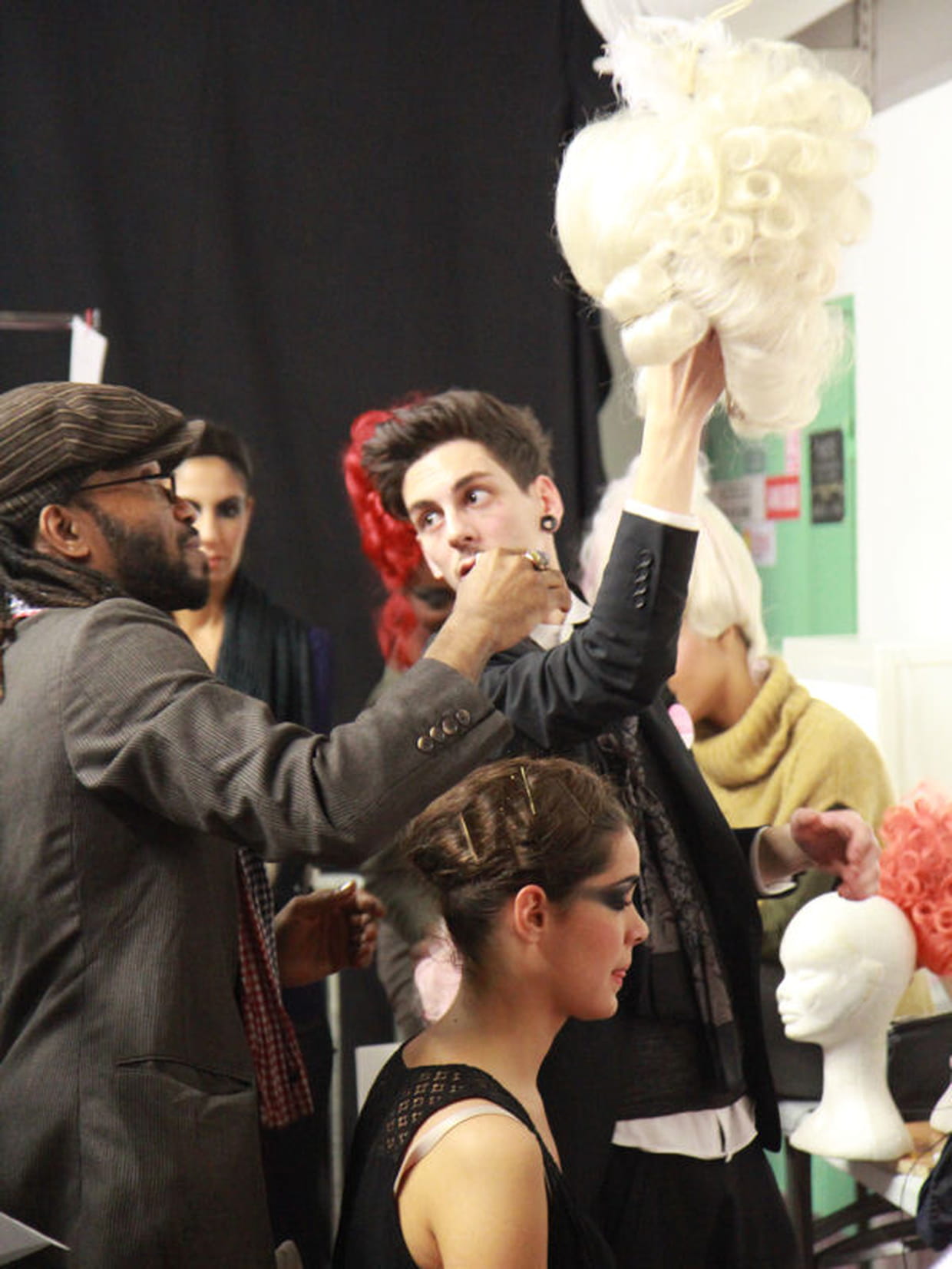 "Il y a eu un gros travail réalisé sur les coiffures, car nous avions plus d'une vingtaine de perruques à coiffer. Lorsque le stock de perruques est arrivé, j'ai choisi celles qui correspondaient à l'image que j'avais de Marie-Antoinette, au niveau de la longueur et de l'épaisseur des cheveux." raconte Patrick Augustin, artiste du cheveu, partenaire du salon.