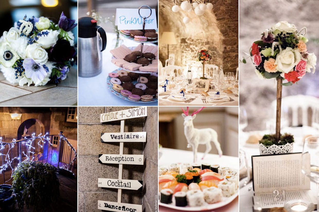 "Un hôtel particulier, en bord de mer, en décembre. Après la cérémonie, direction le tea-time. A la nuit tombée, les mariés ont profité des décorations lumineuses de la ville et d'un sapin illuminé. La déco était coordonnée dans un esprit hiver mais pas Noël (des rennes à paillettes mais pas de traineau !). Des murs mis en lumière par des leds et beaucoup de bougies sur les tables rehaussaient le côté "cosy". Nous avons réalisé des arbres de fleurs avec les mêmes fleurs que le bouquet de mariée. Dans un livre ancien adossé au centre de table, on découvrait le numéro de table, choisi en fonction du sens qu'il avait pour les mariés. Côté animations : bar à cocktail, à sushis, à macarons salés étaient de la partie !" révèle Carole Chapalain-Petit, de l'agence Smack. Inspirez-vous de cette déco et parlez-en sur le forum Mariage.