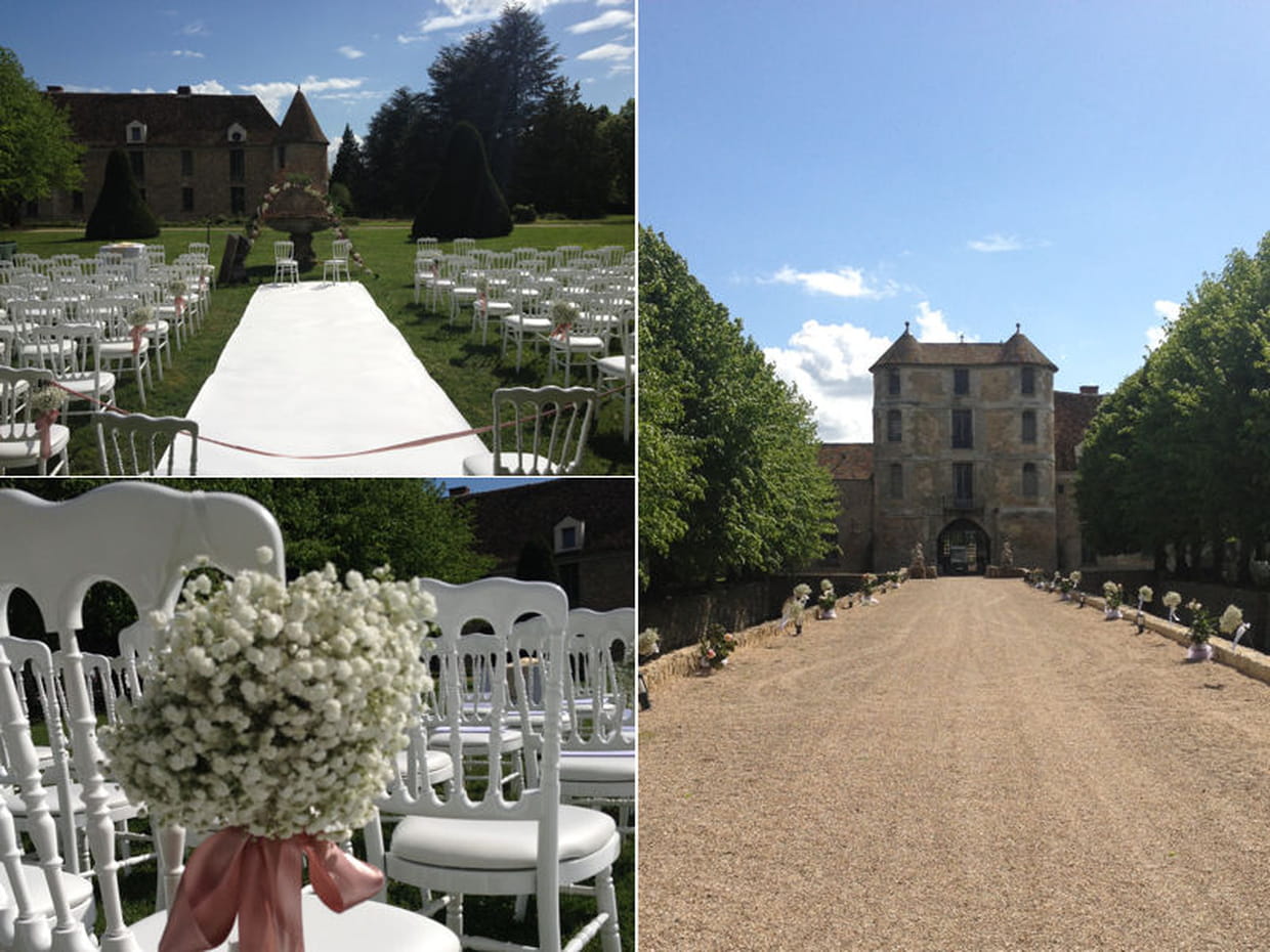 "Ce mariage organisé au château de Villiers-le-Mahieu en mai 2013 avait pour thème couleur : le rose poudré et le blanc. Nous avons fait la part belle aux fleurs : orchidées, roses, hortensia et gypsophile." raconte Caroline Spritzer, organisatrice de mariage de l'agence Physalis.