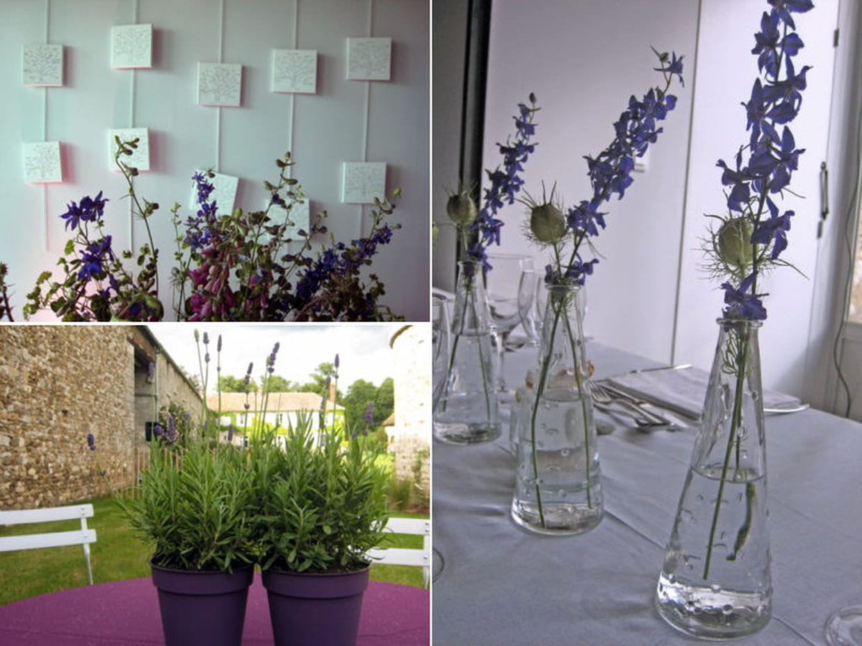 "Les mariés souhaitaient un mariage nature dans une ferme d'Eure et Loire, nous leur avons proposé une décoration champêtre et colorée : fleurs des champs, animation photobooth dans l'herbe. Et la mariée est tombée dans la bonne saison pour le tant convoité bouquet de pivoines. A l'extérieur des nappes de couleurs vives et des plantes en pot recouvraient les tables de salon de jardin, à l'intérieur, des petits vases composés de fleurs des champs venaient égayer cette très jolie salle blanche." se rappelle Estelle Ernewein, organisatrice de mariage pour Bonnie aime Clyde.