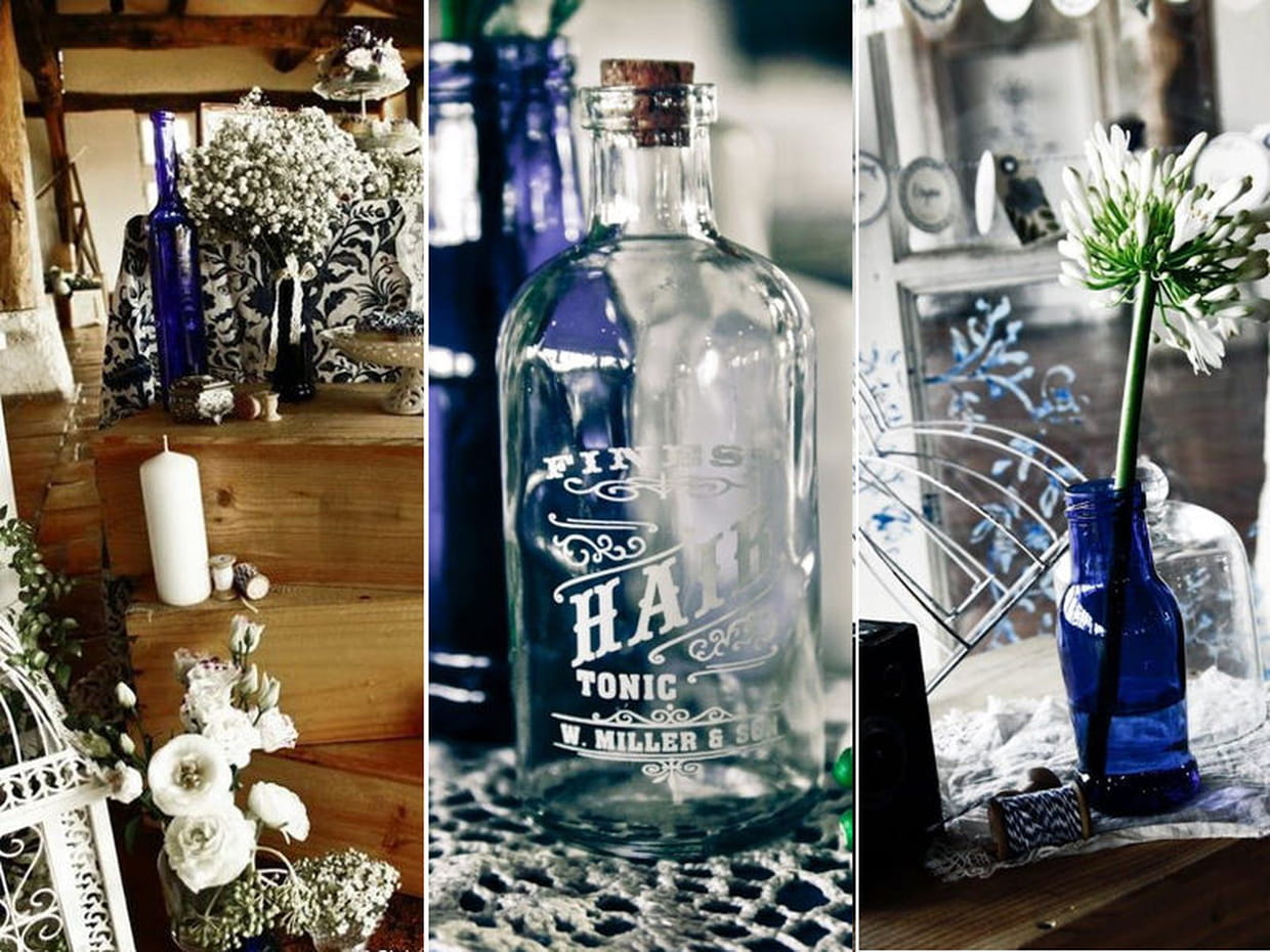 Pour donner une âme à ce mariage, des objets chinés, récupérés sont disposés. Les fleurs sont omniprésentes.