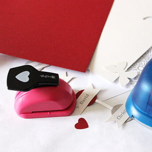 Découper ensuite 9 papillons de 5cm dans le papier gris clair et 9 coeurs dans le papier rouge.