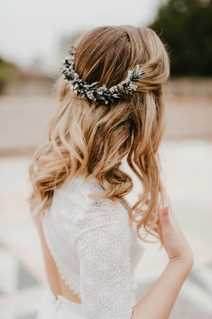 Brins d'avoine et feuilles séchées d'eucalyptus composent ce peigne de mariée de la collection Orichalque des Fleurs Dupont. Un style champêtre et très poétique à adopter le jour J !