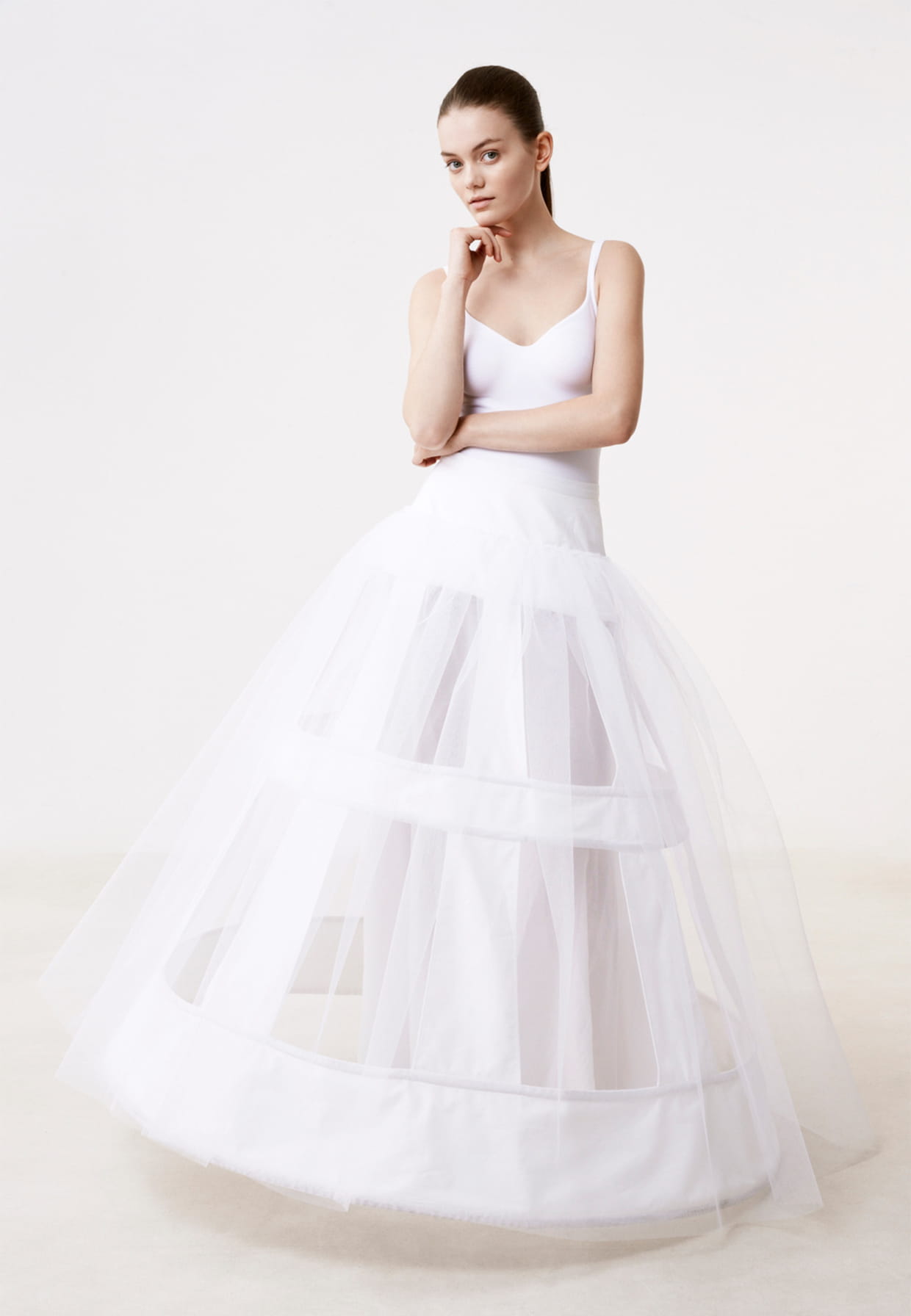 Cette sous-jupe en tulle et en coton peut se porter avec différents modèles de la créatrice, pour apporter le volume d'une robe de mariée de princesse.