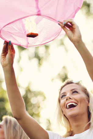 Envie de surprendre vos invités ? Organisez un lâcher de lanternes célestes, appelées également lanternes thaïlandaises. Comment faire ? Il suffit d'écrire un ou plusieurs voeux sur la lanterne en papier (avis aux plus écolos, il en existe des biodégradables !) avant de la gonfler grâce à un brûleur à base de cire naturelle et de carton, qui est vendu avec. Une fois allumée, la lanterne s'échappe dans le ciel... pour une envolée pleine d'espoir ! A réaliser en pleine nuit, ce sera d'autant plus romantique