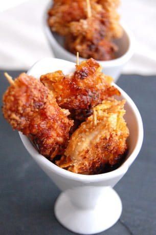 Voilà des mini brochettes de poulet élégantissimes, à disposer sur votre buffet ! Ou le poulet fait un effet bœuf... Pour encore plus de goût, n'hésitez pas à proposer des sauces (barbecue, poivre, foie gras...). Une recette facile et chic pour votre mariage !