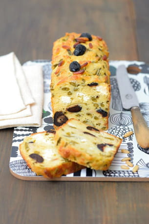 Cake aux haricots verts, feta, pignons et olives noires © Florence Edelmann/D'Aucy