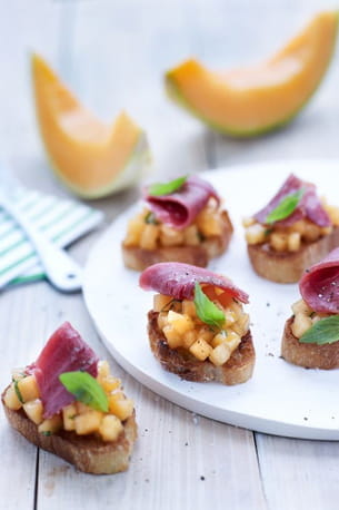 Crostini de melon au magret de canard © JC Amiel – Orathay Souksisavanh