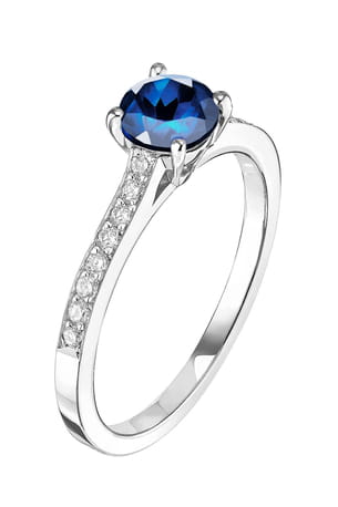 Cet anneau en or blanc surmonté d'un saphir rond revisite avec élégance le solitaire.
