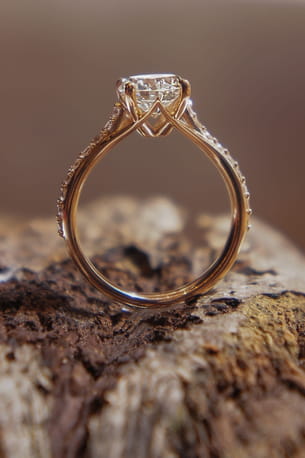 Proposée par l'atelier Lavoisier, une jolie marque créee en 2018 et à la fois moderne, éthique et écologique, cette bague en or jaune met en valeur le diamant grâce à son pavage délicat.