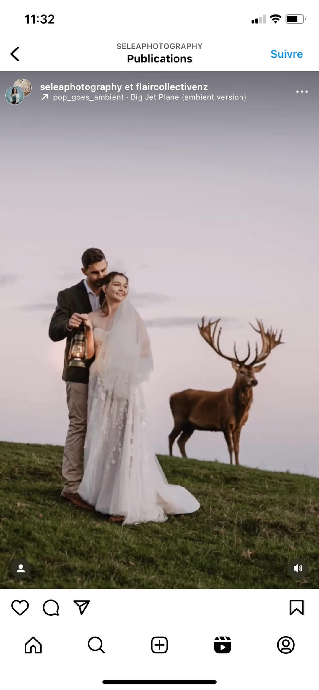 Alors qu'ils étaient en train de prendre la pose pour leurs photos de mariage, en plein milieu d'un vaste champ en relief, un couple a dû s'accommoder de la présence d'un majestueux cerf élaphe à quelques mètres d'eux, une espèce très présente en Nouvelle-Zélande, reconnaissable grâce à son corps fin et élancé, ses pattes fines et ses bois de très grande taille. La photographe professionnelle, Ioana Sela, qui accompagnait les mariés, a bien entendu immortalisé la scène et a partagé les clichés sur son compte Instagram, @seleaphotography.